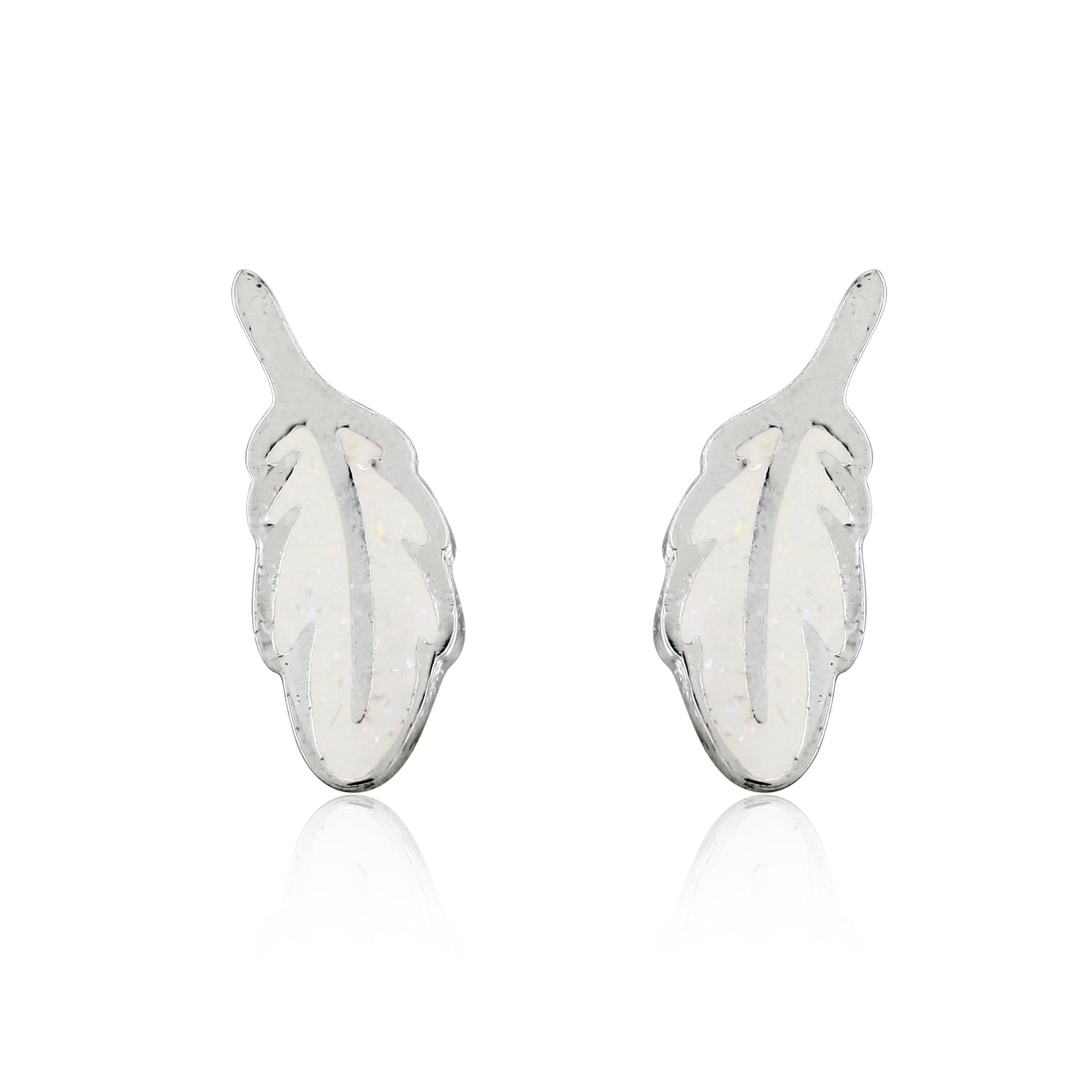 "Feathers appear when loved ones are near" Beautifully dainty silver plated feathers with a white sparkly enamel inset. Presented on a mint striped card in a branded gift box.