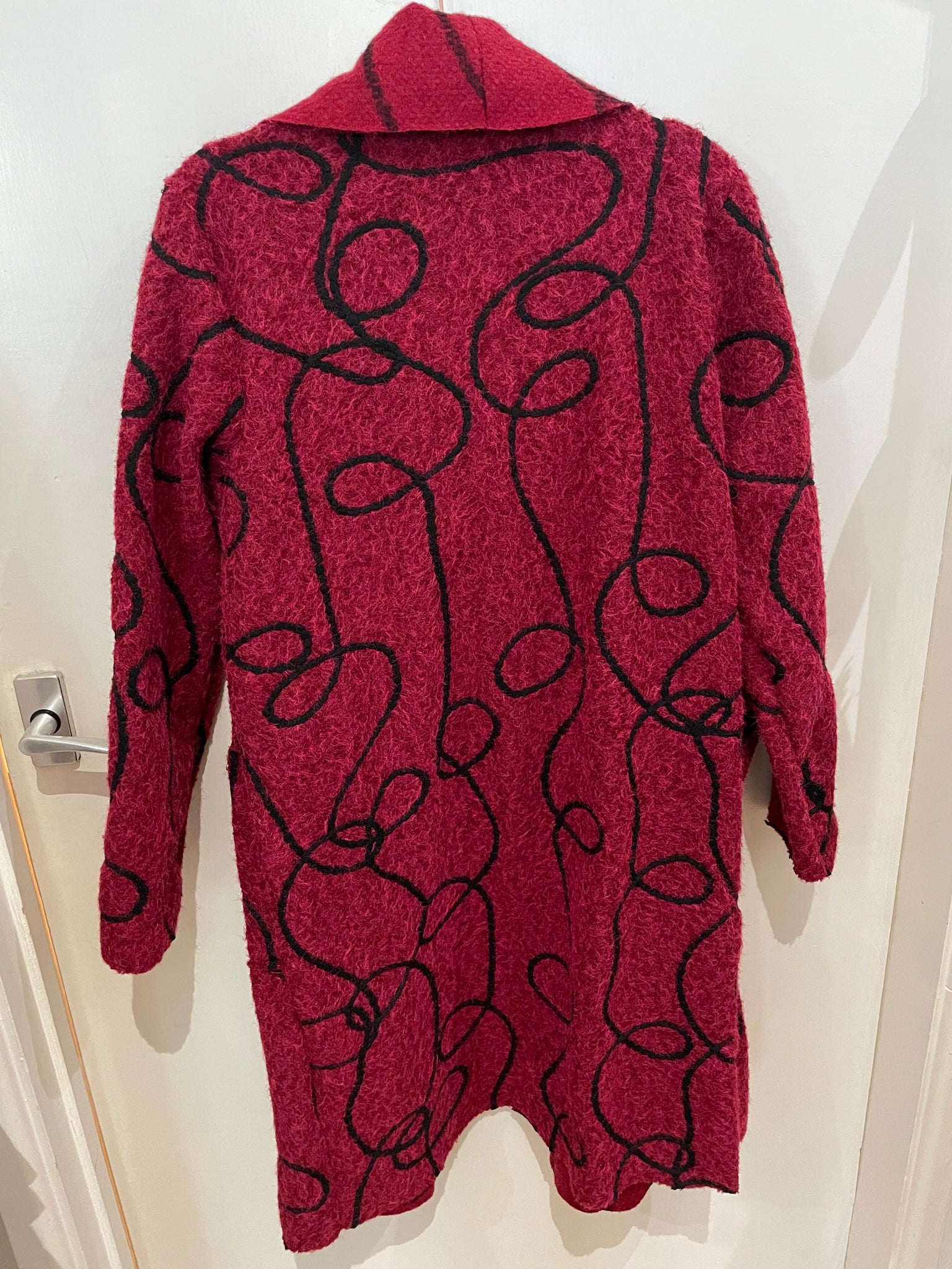 Beautiful Waterfall Coat One Size Red with Black Swirl Design