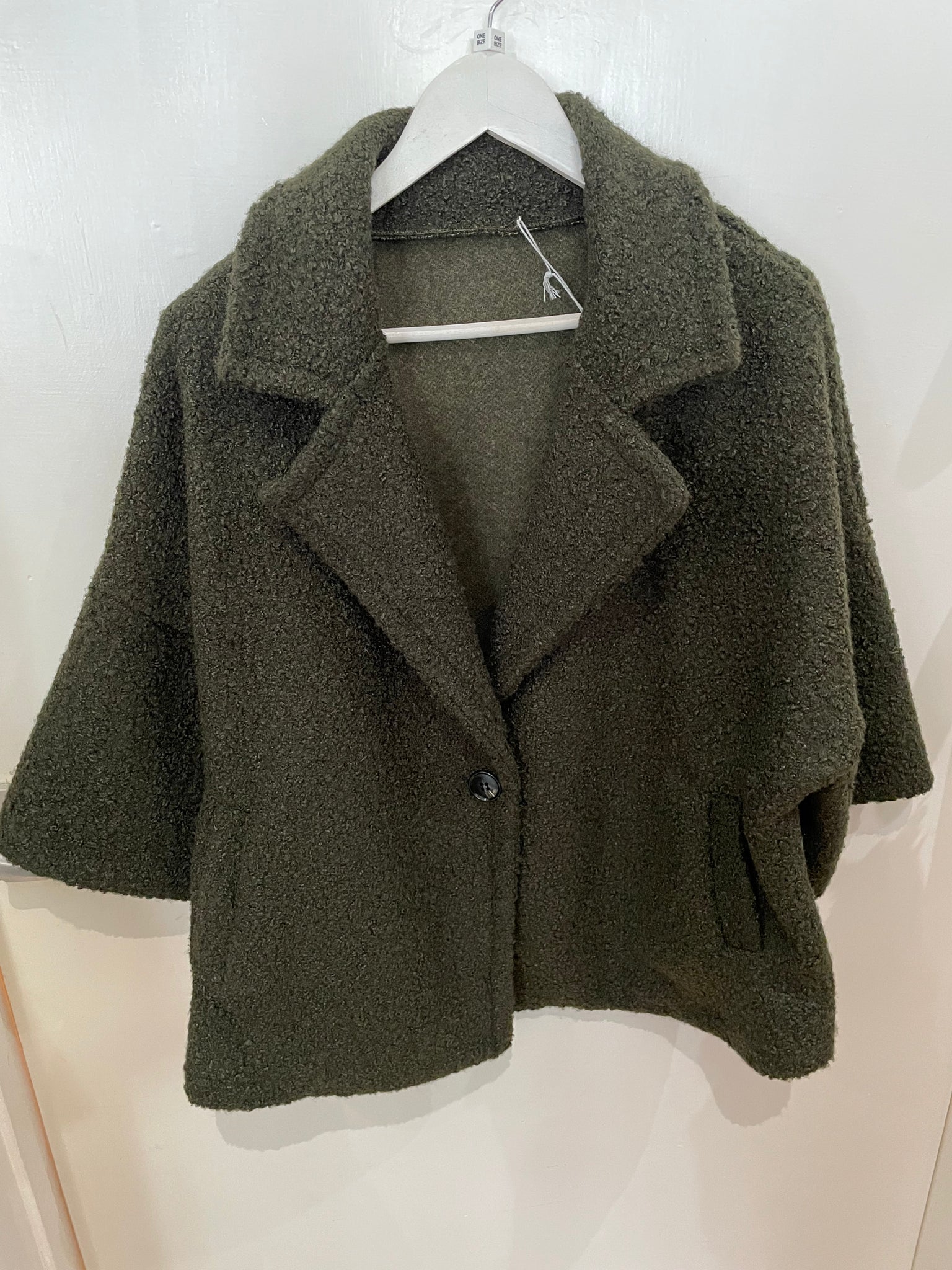 Khaki Boucle Jacket 3/4 Sleeves One Size