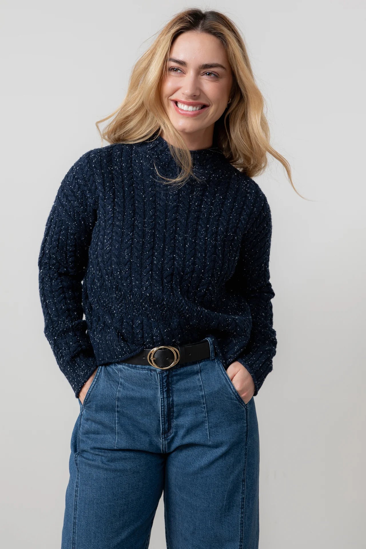 Lily & Me Elspeth Cable Knit High Neck Jumper Navy