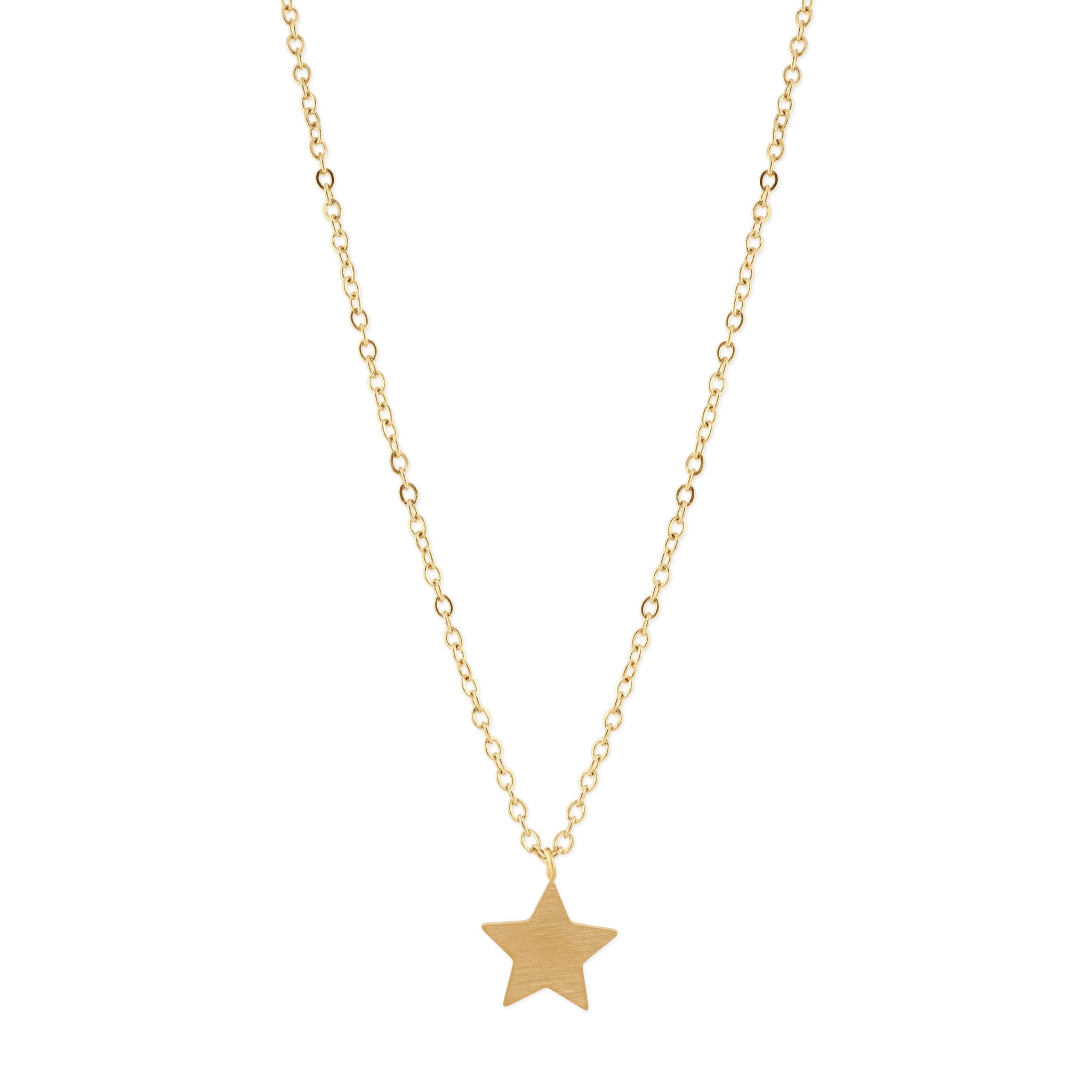 Simple everyday Star necklace. Gold plated stainless steel. Chain length 40cm (with 7cm extender) Presented on a striped card within a branded gift box.