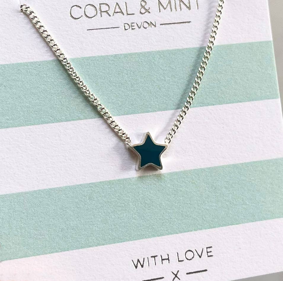 Dainty stainless steel necklace with a cute star charm. Chain length 40cm (with 5cm extender) Presented on a striped card within a branded gift box.