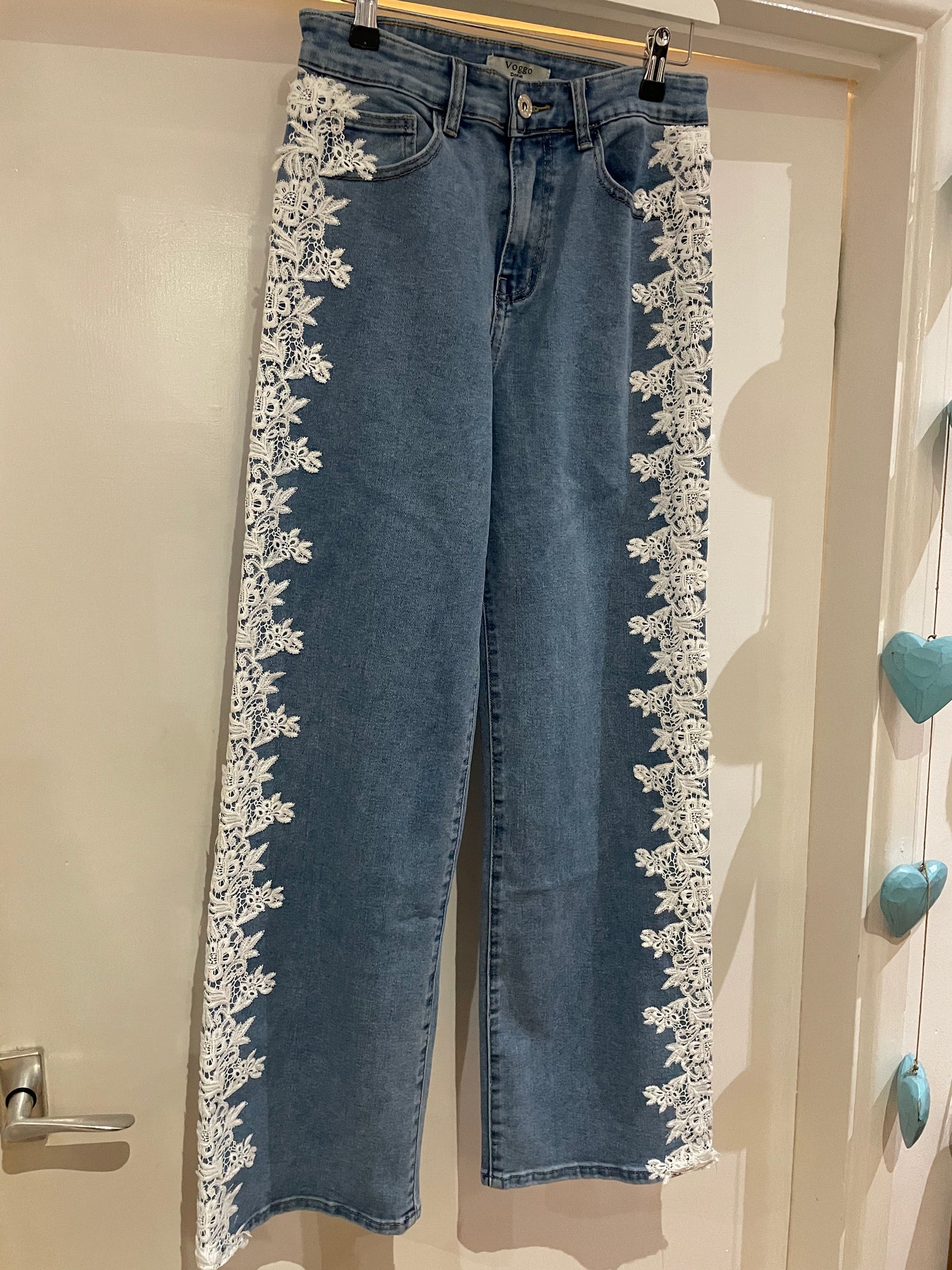 Embroidered lace detail jeans