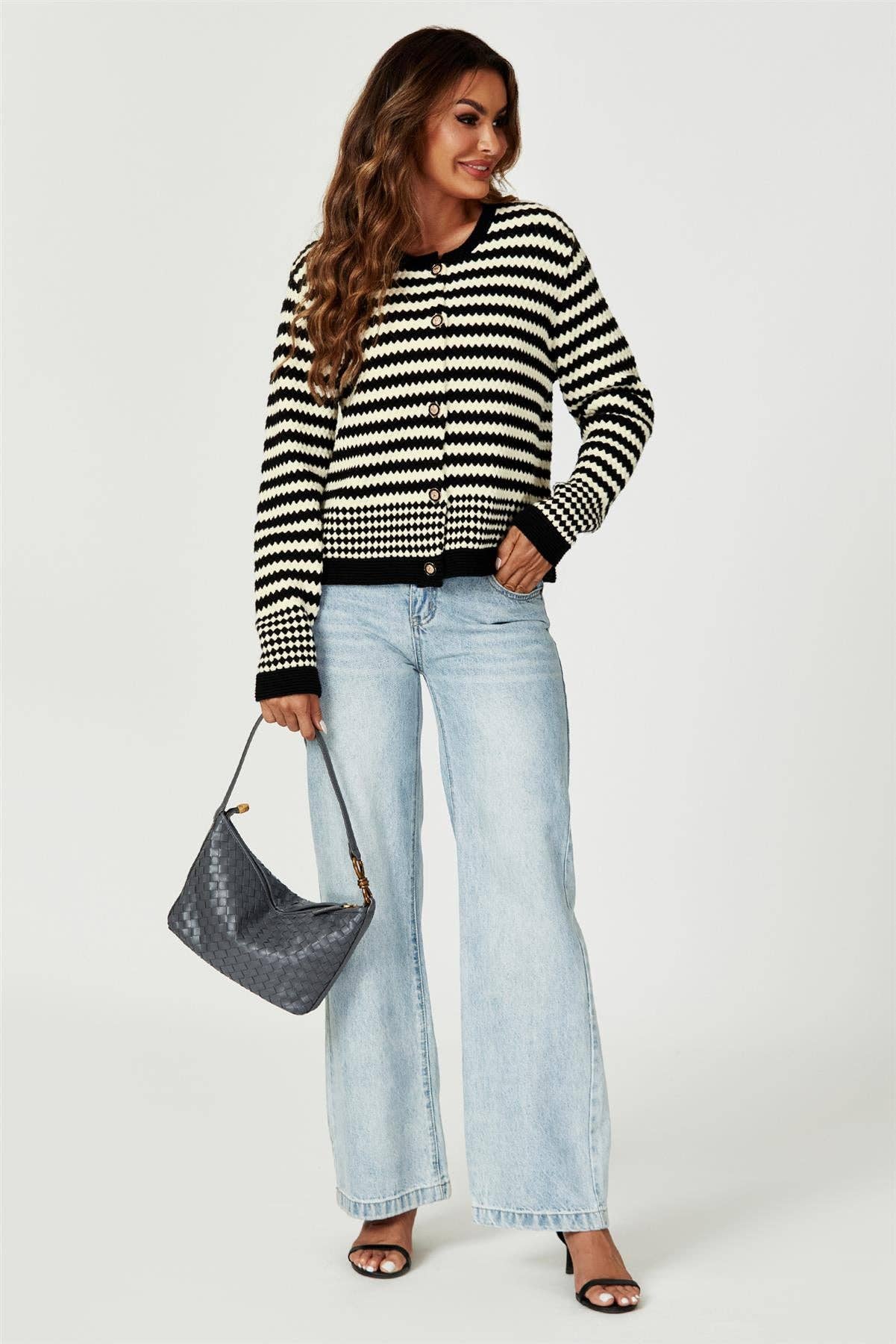 This Geo Pattern Knitted Cardigan is a statement layering piece that combines comfort with style. Featuring a bold geometric pattern, this cardigan is crafted from a soft, cozy knit fabric for warmth and breathability. The relaxed fit and open front design make it easy to wear, while the long sleeves and ribbed cuffs add a classic touch. Perfect for adding a pop of texture to any outfit, this cardigan is a versatile addition to your casual wardrobe. Ideal for both everyday wear and cool-weather layering.