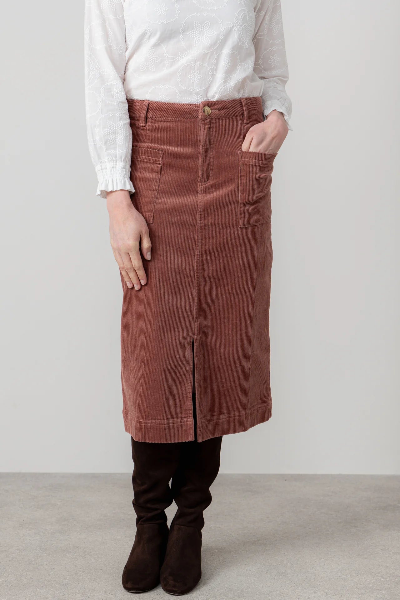 A classic midi, our Penrose skirt is made from a soft textured jumbo cotton cord. A touch of elastane gives stretch to the fabric for a more comfortable fit and a slight front split allows for ease of walking.